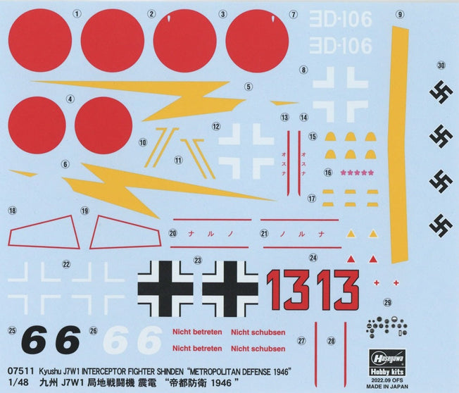 Vendor:HasegawaHasegawa 1/48 J7W1 Shinden Luftwaffe Metro Defense 1946 Hasegawa HAS07511 1/48 J7W1 Shinden Luftwaffe Metro Defense 1946 Hasegawa bold kit to explore the “What If” scenario if WWII did not end in 1945. What if J7W1 Shinden was...