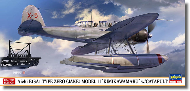 Vendor:HasegawaHasegawa 1/72 Japanese Navy Aichi E13A1 Zero Type Seaplane 11 Type Kimikawa Maru Mounted Machine w/Catapult Product Description Reproduction the aircraft installed on the special seaplane tender "Kimikawa Maru"!Comes with Kureshi No. 2 Catapult parts as a bonus part. Package illustrations will be done by Dankuro...