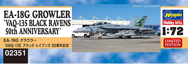 Vendor:Hasegawa1/72 EA-18G GROWLER "VAQ-135 BLACK RAVENS 50TH ANNIVERSARY" by HASEGAWA 02351 1/72 U.S. Navy Carrier-Borne ECM Aircraft - Length 255mm - Wing Span 190.5m - Parts 177pcs - Glue & Paint not Included- Regular price