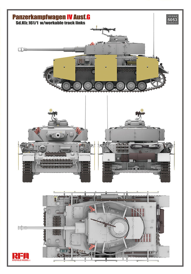 Vendor:Rye Field Models1/35 Rye Field Model Panzerkampfwagen IV Ausf.G Sd.Kfz.161/1 with Workable Track Links 2021 New release from RyeField Model. This is the state of the art, most up to date model kit for the Panzer IV Ausf.G/H 2-in-1 available with Workable Tracks. 1/35...