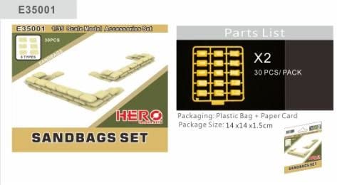 Vendor:Hero Hobby1/35 SANDBAGS SET This is a plastic model kit (unbuilt / unpainted) - NOT A TOY ASSEMBLY AND PAINTING REQUIRED (glue and paint not included) Contains parts to build one model