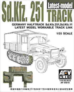 Vendor:AFV CLUB1/35 SdKfz 251 HALFTRACK WORKABLE TRACK LINKS LATEST TYPE 1/35 scale workable track links for the Sd.Kfz.251. and the Sd.Kfz.11 late versions. Unassembled Model Kits - Glue & Paints not Included
