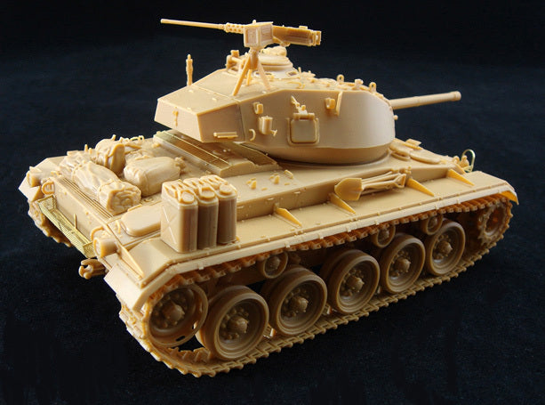 Vendor:Bronco Models1/35 US LIGHT TANK M-24 'CHAFFEE' w/CREW (NW EUROPE 1944-45) BRONCO MODELS CB35069 1/35 scale plastic model kit of the US 'Chaffee' light tank M24 complete with crew. Markings from North-West Europe 1944-1945.