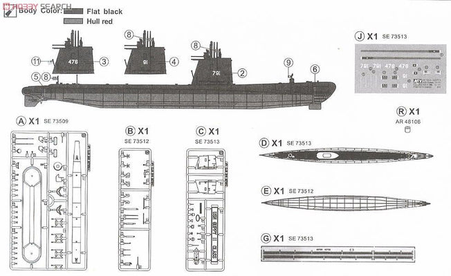 Vendor:AFV CLUB1/350 USN SUBMARINE GUPPY II AFV CLUB SE73513 1/350 scale plastic model kit of the Guppy II submarine.