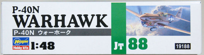 Vendor:Hasegawa1/48 P-40N WARHAWK BY HASEGAWA 1/48 U.S. Army Air Force Fighter by HASEGAWA (JAPAN) Model Lenght: 211.5 mm Model Width: 237 mm Estimated Parts: 108 pieces Unassembled Model Kit - Glue & Paint not Included.