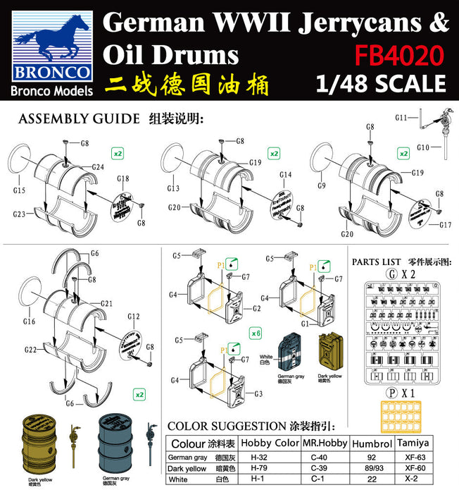 Vendor:Bronco Models1/48 Zubehrö WWII German Jerry Cans and Fuel Drums By BRONCO MODELS 1/48 Scale Unassembled Model Kit - Glue & Paints not Included.