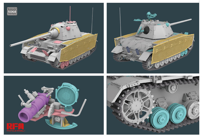 Vendor:Rye Field ModelsRyeField RM5068 1/35 Pz.IV Ausf.J mit w/ Panther F Turret with Workable Tracks RyeField RM5068 1/35 Pz.IV Ausf.J mit w/ Panther F Turret, tracks Brand New Original kit from Rye Field Models from Hong Kong Some of the features of the Model Kit: High Precision...