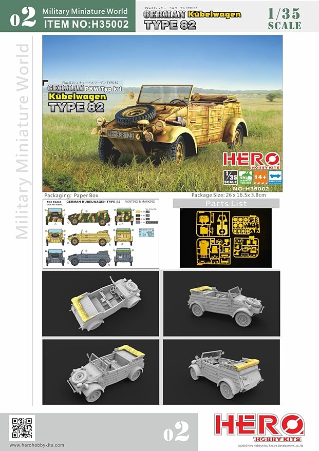 Vendor:Hero HobbyGerman PKW Typ k1 Kübelwagen Type 82 Hero Hobby Kits | No. H35002 | 1:35