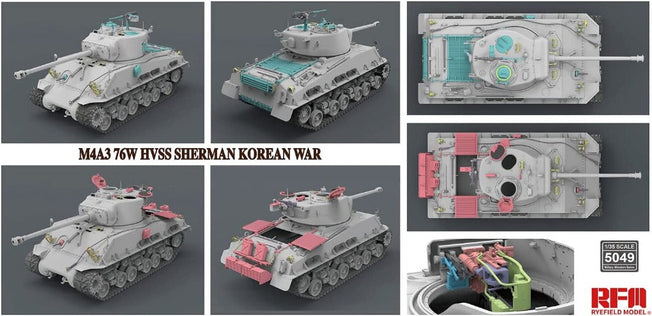 Vendor:Rye Field Models1/35 M4A3 76W HVSS SHERMAN KOREAN WAR - RYEFIELD MODEL 5049 1/35 Scale plastic model tank by Ryefield Model