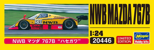 Vendor:Hasegawa1/24 NWB MAZDA 767B (LIMITED EDITION) BY HASEGAWA 1/24 Japanese Group C Race Car Estimated No. of parts … 80Length …192mmWidth …83mm Markings1991 All Japan Sports Prototype Car Endurance Championship Car No.230 Unassembled Plastic Model Kit - Glue & Paints not...