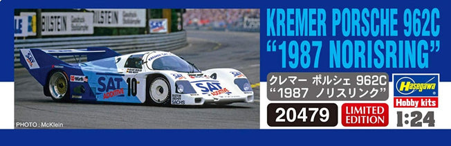 Vendor:Hasegawa1/24 KREMER PORSCHE 962C "1987 NORISRING" BY HASEGAWA 20479 1/24 Scale Racing Car Kit by Hasegawa Japan - Unassembled Plastic Model Kit - Paint & Glue not Included - Length 200mm - Width 83mm - Parts 57 pcs