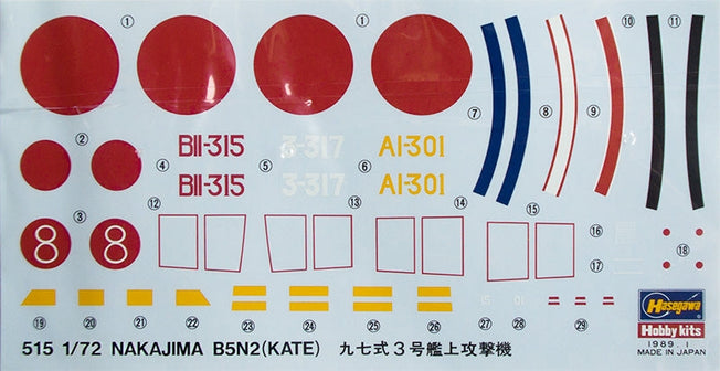 Vendor:Hasegawa1/72 NAKAJIMA B5N2 KATE HASEGAWA 00137 1/72 scale plastic model kit of the Nakajima B5N2 Kate.
