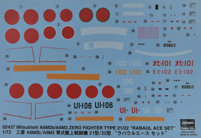 Vendor:Hasegawa1/72 Mitsubishi A6M2b/A6M3 Zero Fighter Type 21/Type 22 "Rabaul Ace Set" Rabaul was the most heavily defended area in the southwest Pacific in WWII. Numerous arial battles were fought and a few Ace were born at that time. Hasegawa special kit...