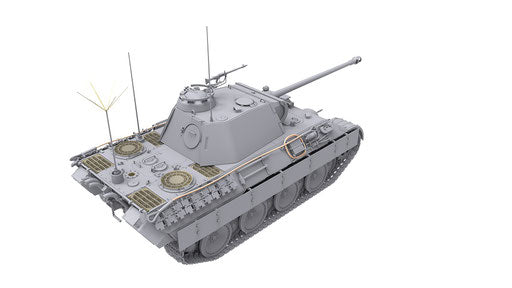 Vendor:Das Werk1/35 German Pz.Kpfw.V PANTHER AUSF A EARLY/MID Production 2-in-1 KIT Simplified version of the same model tank produced by Takom. 2-in-1 kit for either a early or mid production Panther A