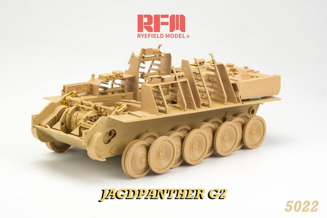 Vendor:Rye Field Models1/35 JAGDPANTHER G2 WITH FULL INTERIOR RYEFIELD MODEL 5022 1/35 scale plastic model kit of the Jagdpanther G2 with full interior.