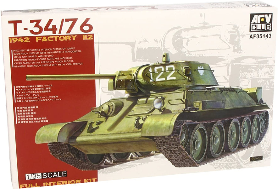 1/35 scale plastic model kit of the T-34/76 1942 Factory 112 tank.